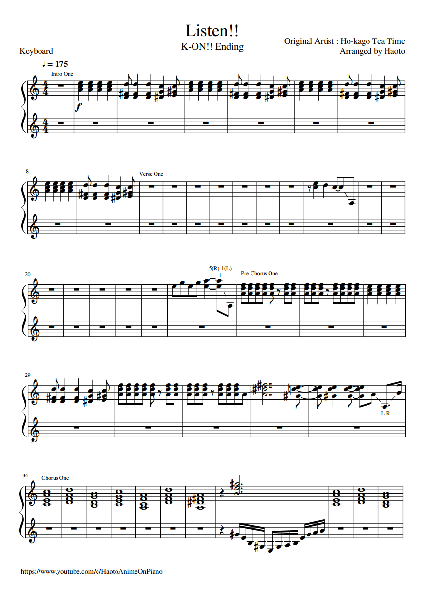 KON  Listen Keyboard  KON sheet music   Sheethost